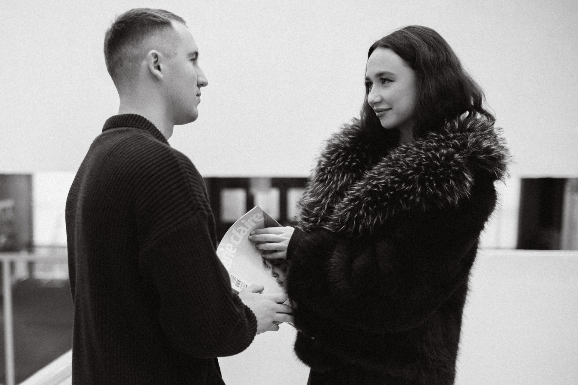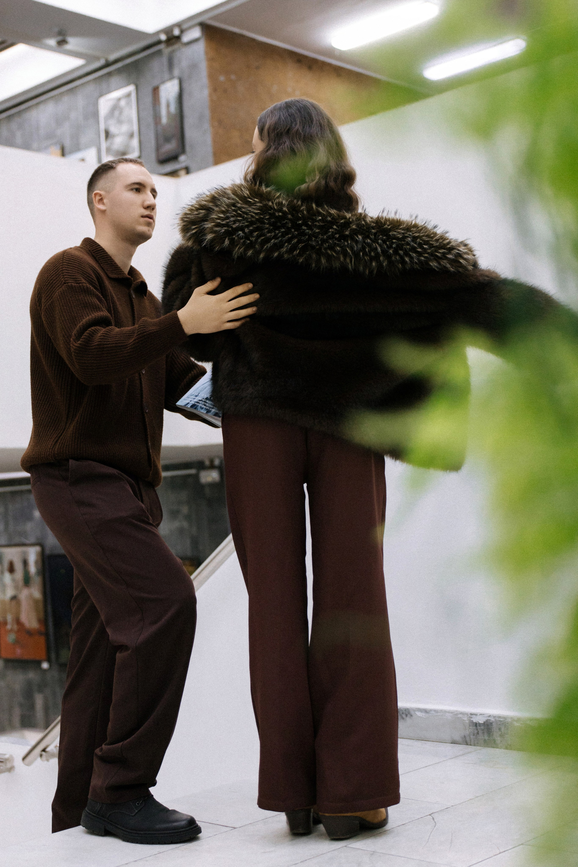 Когда он открыл глаза, её рядом уже не было — только журнал, оставленный словно знак. Он искал её взглядом по всей библиотеке и вдруг увидел, что она собирается уходить. Подойдя осторожно, он помог ей надеть шубу и вернул журнал. Их взгляды снова встретились, наполненные нежностью и обещанием, а что было дальше — осталось загадкой, окутанной волшебством момента.