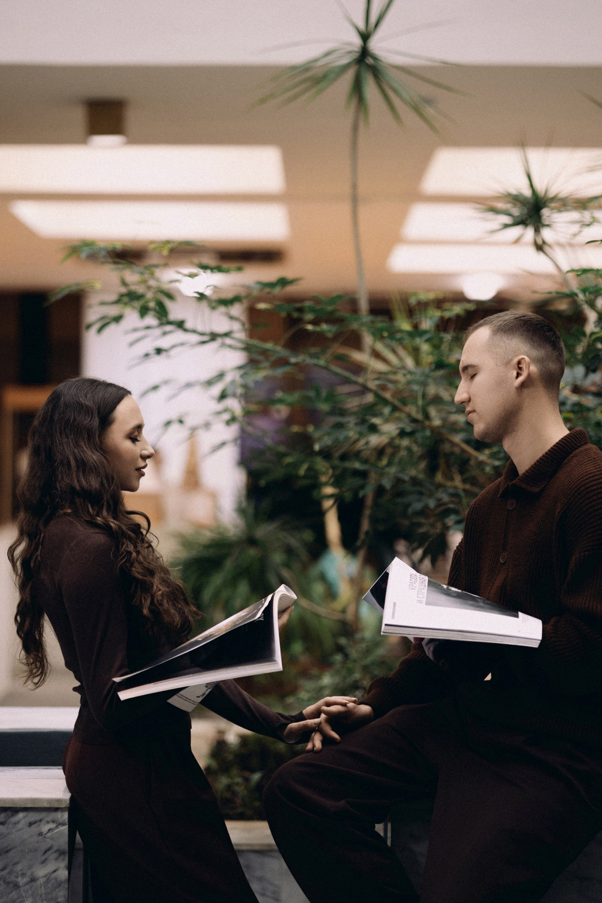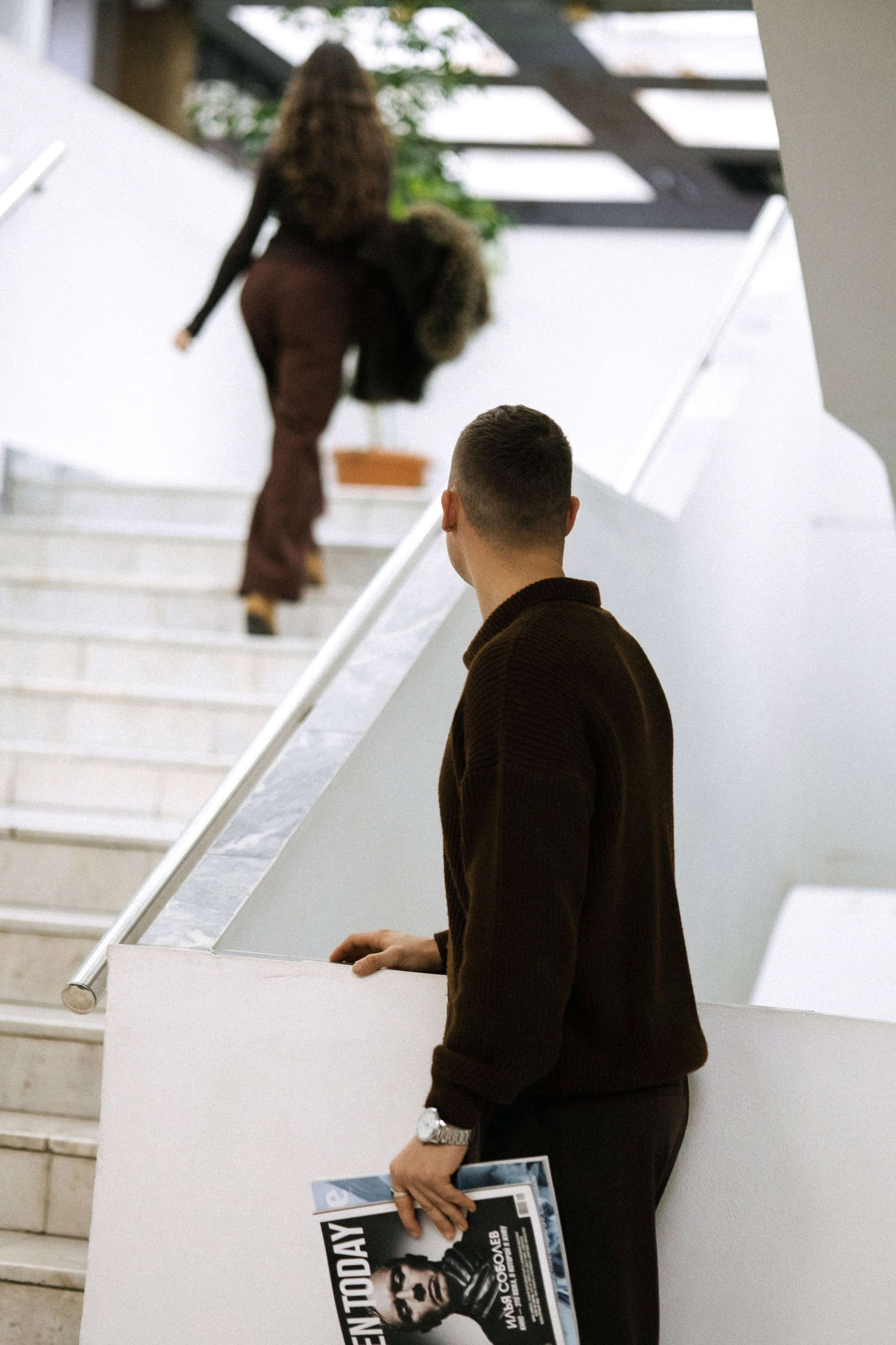 Он сидел в тихой библиотеке, погружённый в страницы журнала моды. В этот момент в помещение вошла она — и его взгляд сразу задержался на ней. Она села рядом, тоже открыла журнал, и между ними завязался невысказанный диалог взглядов и улыбок. В этом тихом пространстве возникла тонкая нить взаимной симпатии.